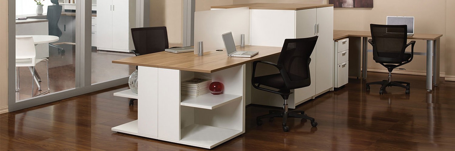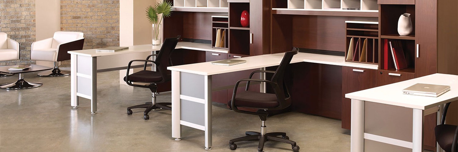 With Aristotle laminate casegoods, design possibilities are virtually endless. Able to conform to the space and functional needs of any office environment, Aristotle casegoods offer a level of flexibility and refinement expected from more expensive furniture. Aristotle casegoods consists of modular pieces, including desking and a variety of storage options to create functional workspaces. Towers, overheads, credenzas, cupboards and cabinets meet the space and usage requirements of any office. Matching freestanding tables provide auxiliary work surfaces.The line’s affordable upscale look offers clean, solid construction with no visible fasteners. Surfaces are 1 inch thick and metal legs offer strength and durability. Aristotle casegoods complement contemporary and transitional office environments. Finish and accent options provide a desirable, almost residential look. The seven standard laminate finishes can be mixed and matched to create a two-tone look. Accent options enhance the contemporary feel of the line. Silver door frames, metal legs and desktop screens allow design flexibility to complement any office environment. Integrated grommets and cord management keep the surface looking neat and clean.