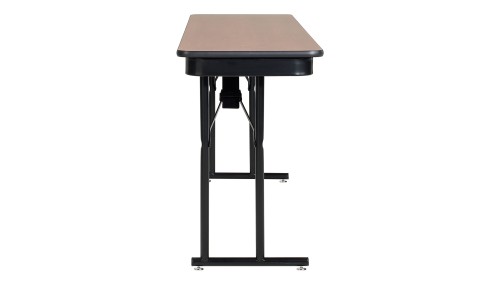Named for its application in training environments, Emissary is the perfect folding table solution for informal seminar meetings or any space where transitional tables are needed. Emissary folding tables provide versatility and durability in a wide range of settings. Emissary tables are available with two core types. With superior strength and light weight, Emissary tables with honeycomb core are the prudent choice for heavy-duty applications requiring frequent use and setup. The honeycomb core provides lightweight convenience. High-pressure laminate tops with backing sheets resist moisture, prevent warping and add strength. An excellent all-around choice, Emissary tables with solidcore provide superior quality and performance at a modest price. The high-strength, 3/4″-thick solid core top with laminate withstands stains, scratching, abrasion and hot liquids. Both options are available in six sizes and are made with protective bullnose edges and strong one-piece, roll-formed 16-gauge steel aprons for durability. A wide variety of laminate, edge and frame colors provide many design options. Emissary folding tables are backed with a five-year warranty.