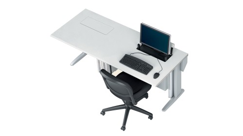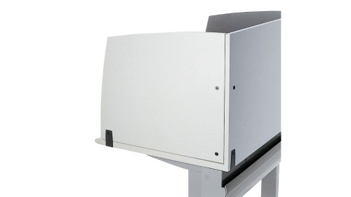 The Flat Screen Garage system brings a new level of flexibility to training rooms. A multiple-use table means people can use a room for a variety of applications to maximize efficiency. When you need high-tech access, just press the button and the training table transforms into a computing center in seconds. The motorized lift conveniently opens the security door and raises the flat screen display. Another touch lowers it until it’s needed again. The keyboard and mouse are stored with the monitor, freeing under-table space. Since the garage is housed at the rear of the table, there is ample working room even when it is in use. Power and data lines stay connected and secure with an integrated wire management system. Designed with durability in mind, the Flat Screen Garage easily handles the rigorous challenges posed by educational, training and other multi-use applications. Valuable equipment remains locked and safe when not in use. The Flat Screen Garage is backed by a 10-year warranty.