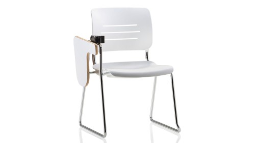 The Grazie® Collection features the world’s first true ergonomic stack chair. Designed by Giancarlo Piretti, Grazie’s Perfect Pivot™ is a patented frictionless mechanism that exactly mirrors natural body movement to provide the ultimate in sitting comfort. Artful and timeless, Grazie’s gracefully sculpted design and ingenious function blend beautifully in any environment. Backrest assembly moves over molded slide bushings and is supported by steel coil springs. This mechanism allows the backrest to move 15 degrees about an axis of rotation that is through the hips of the sitter. Injection-molded polypropylene shells and seat liner board. 12-gauge steel underseat structure. Optional upholstery over 1″ thick seat foam and ½” thick back foam.