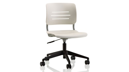 The Grazie® Collection features the world’s first true ergonomic stack chair. Designed by Giancarlo Piretti, Grazie’s Perfect Pivot™ is a patented frictionless mechanism that exactly mirrors natural body movement to provide the ultimate in sitting comfort. Artful and timeless, Grazie’s gracefully sculpted design and ingenious function blend beautifully in any environment. Backrest assembly moves over molded slide bushings and is supported by steel coil springs. This mechanism allows the backrest to move 15 degrees about an axis of rotation that is through the hips of the sitter. Injection-molded polypropylene shells and seat liner board. 12-gauge steel underseat structure. Optional upholstery over 1″ thick seat foam and ½” thick back foam. Injection-molded glass-reinforced nylon 5-blade base.