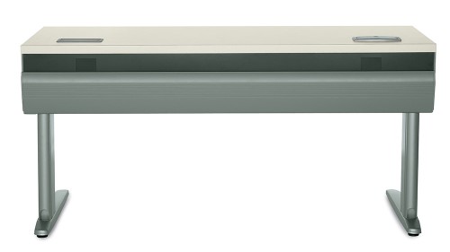 The InTandem training table is the easiest way to access power and data for worksurfaces. Unique internal beams hold separated wires and cables to eliminate interference. The beam has flip-down doors for convenient access from either the front or back sides. Technicians can access wires, while users remain at the tables. InTandem training tables can be configured back-to-back or side-by-side. The powered beam allows table configurations that are unlimited by power and data access. Shared table legs maximize leg room and ease clutter below the surface. Power can be fed through any leg or from the ceiling through power poles. Snap-together connectors easily distribute power from table to table. Data cables are routed through continuous data channels (no gaps). Hard-wired power is also an option. Include a PowerUp or Villa module for surface-height access to power. A kit is available to convert selected surfaces to a 32″ surface height to accommodate wheelchairs. The contemporary table design supports any training environment. Tables are available in two depths, nine lengths and three leg heights, including stand-up height. Three screen/divider heights allow for varying privacy. Two corner units – square and transitional – ensure you can leverage all available space within a training room. Finishes include three edge styles, five frame colors and 25 laminate choices. InTandem training tables are built tough to endure the day-to-day abuse of training environments. Our quality craftsmanship is backed by a lifetime warranty.