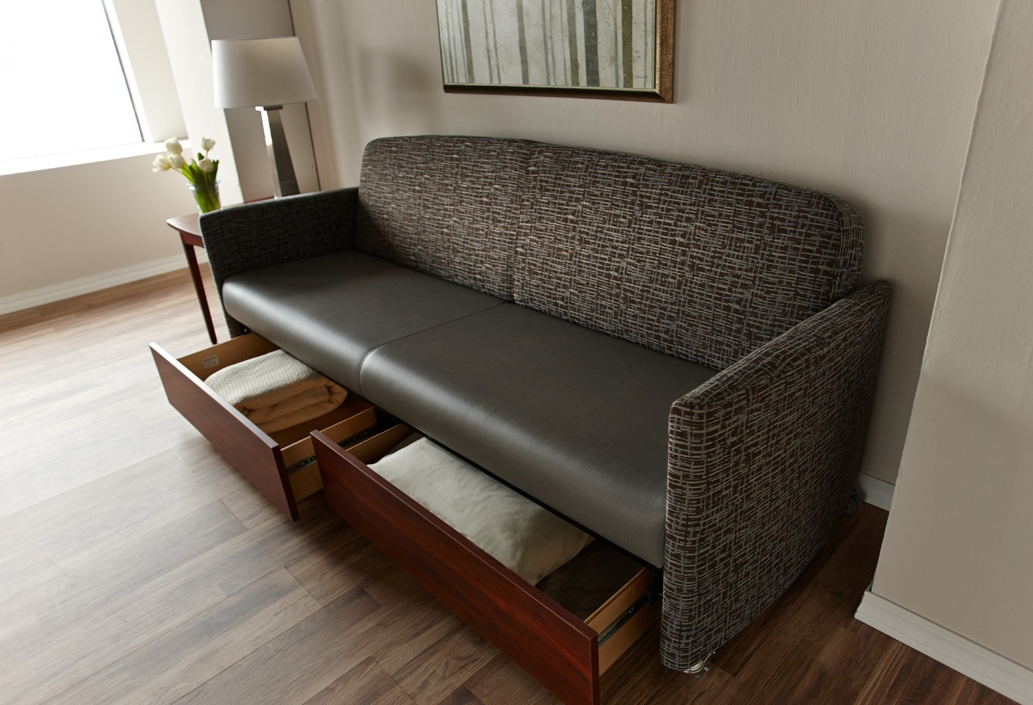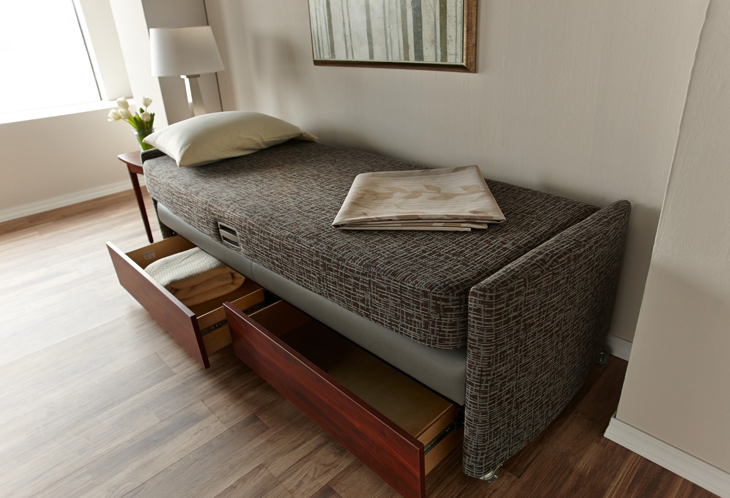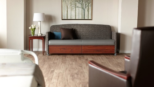 The LaResta® day bed’s elegant design looks like it belongs in the finest living room. Yet its versatility makes it right at home in the healthcare setting. Built around the realistic needs of patients, family and healthcare staff, LaResta works seamlessly within the often-limited footprint of the patient room. The LaResta day bed is a refreshing solution to the increased demand for sleepover accommodations in patient rooms. An attractive sofa by day, LaResta comfortably seats four people. By night, its intuitive design makes conversion from sofa to an inviting 34″ x 75″ sleep surface smooth and simple. Both the freestanding and built-in option offer generous space for storage items and bedding.