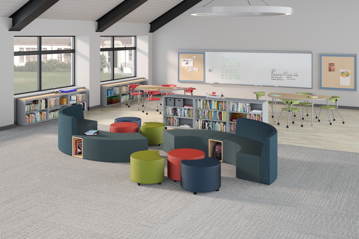 With 24 standard-scale and six junior-scale pieces, MyPlace enables an exceptional range of modular formations. Add rounds, cubes, hexagons or crescents around any formation for conveniently placed single-user seats. Individual square or round tables provide quick touchdown spots, while in-line tables integrate seamlessly within modular seating elements and provide the convenience of dual-sided storage.