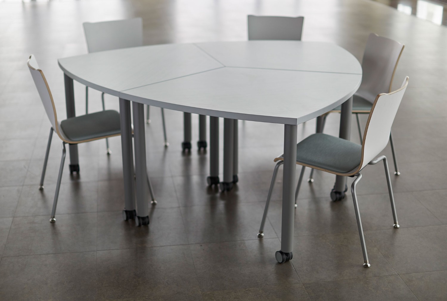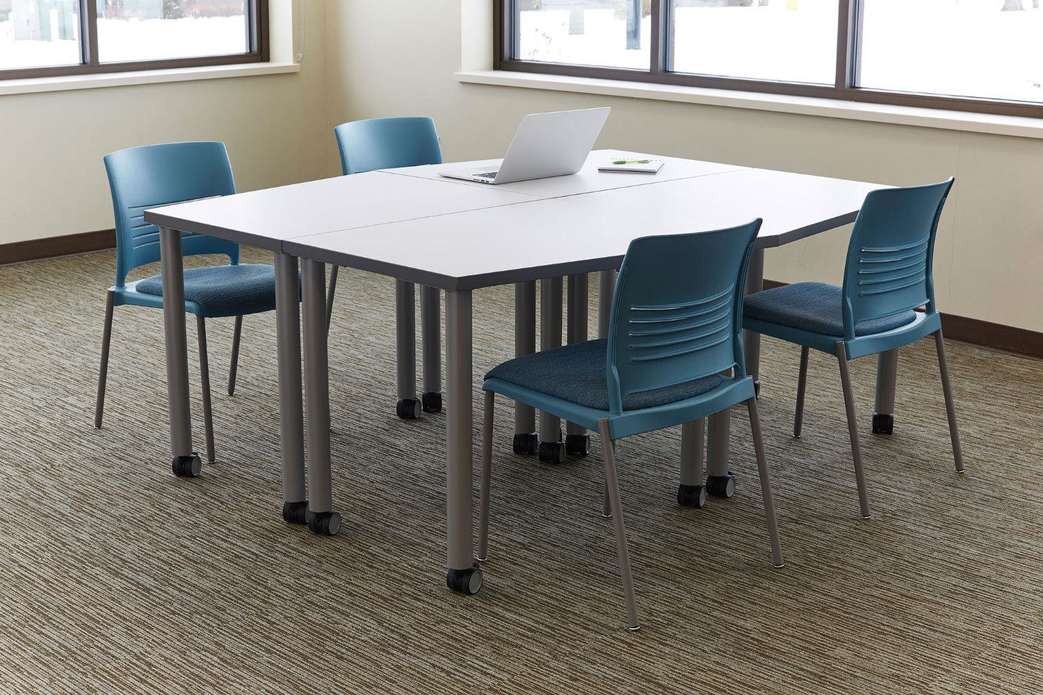 Pillar tables are defined by clean lines, a simple leg, and a multitude of configurable top shapes. Simple and straightforward, Pillar tables provide a place to gather, an area to create, or a spot to focus. In education environments, Pillar tables empower learners to take an active role in their learning process. From elementary classrooms to corporate training rooms, users can arrange Pillar tables into endless configurations for that “just right” learning environment. Combine 120-degree tables to create a serpentine touchdown space; round and square shapes encourage collaboration in café and third spaces. Diamond and reduction shapes combine for a variety of configurations or separate into single tables for more privacy.