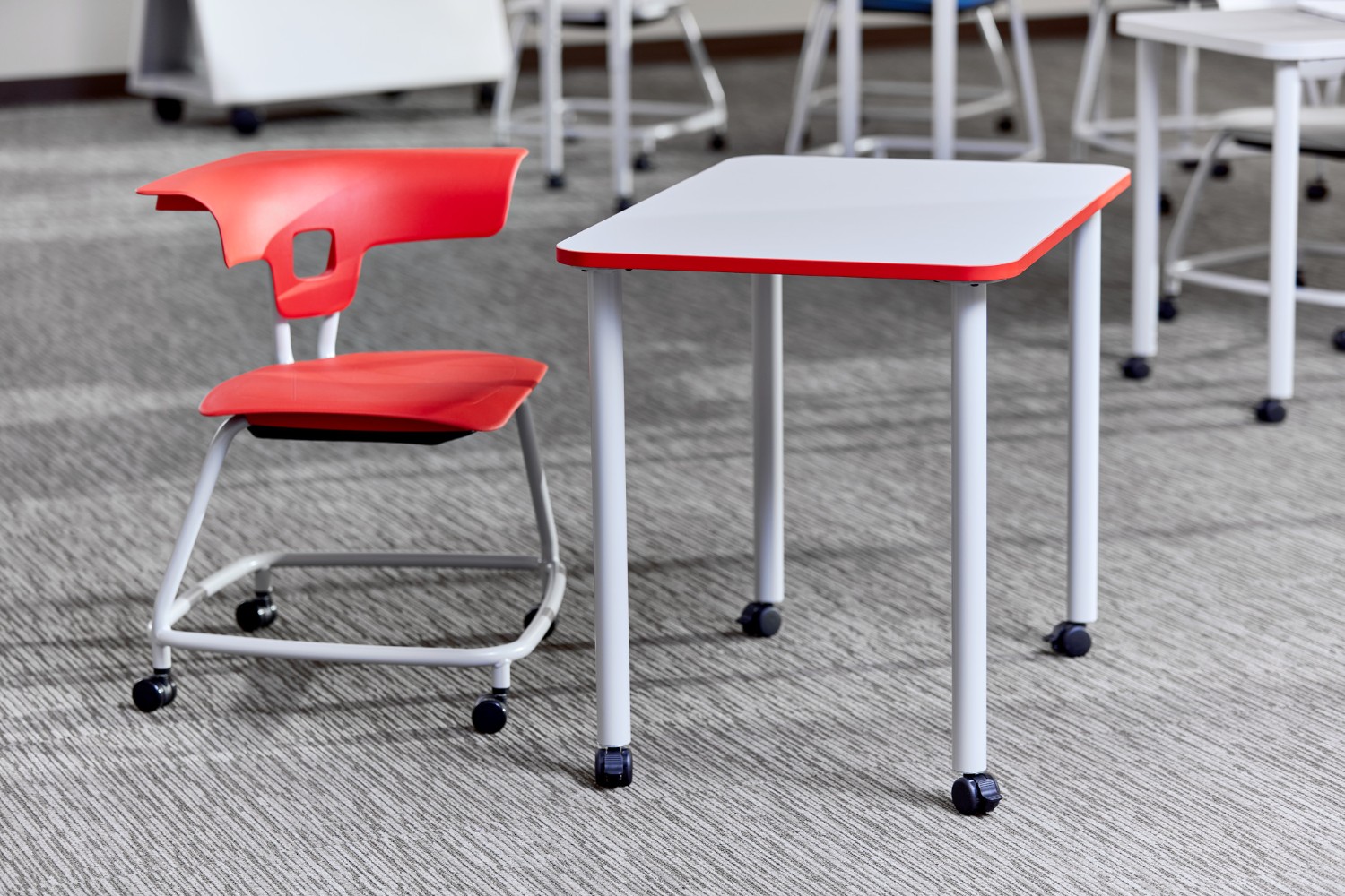 Ruckus post-leg desks deliver flexibility and mobility to enable diverse teaching and learning styles. Choose your desired level of mobility with three base options:  glides, casters or both casters and glides to allow wheelbarrow motion. If your mobility needs change, so can Ruckus desks. An innovative leg design offers interchangeable, same-height casters and glides, which can be swapped in the field with no change in surface height.