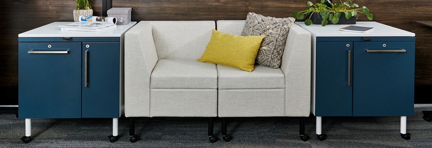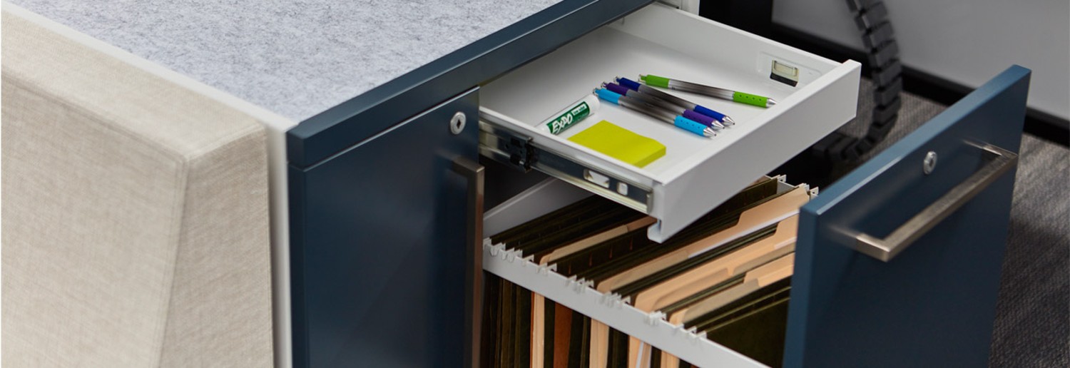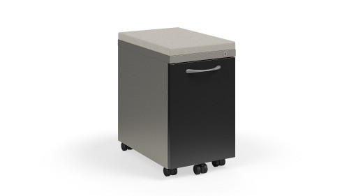 Tattoo storage provides a perfect balance of work and personal compartments for your purse, gym bag, a change of shoes, plus files and folders. It offers mobility and user-control that adapts to of-the-moment needs for privacy or interaction. Featuring an inset leg design, storage elements can be easily moved within your workspace.