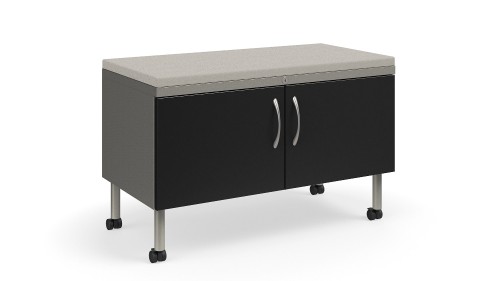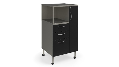 Tattoo storage provides a perfect balance of work and personal compartments for your purse, gym bag, a change of shoes, plus files and folders. It offers mobility and user-control that adapts to of-the-moment needs for privacy or interaction. Featuring an inset leg design, storage elements can be easily moved within your workspace.