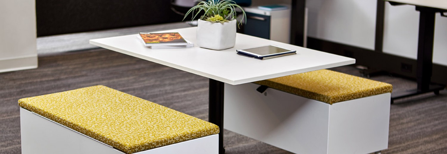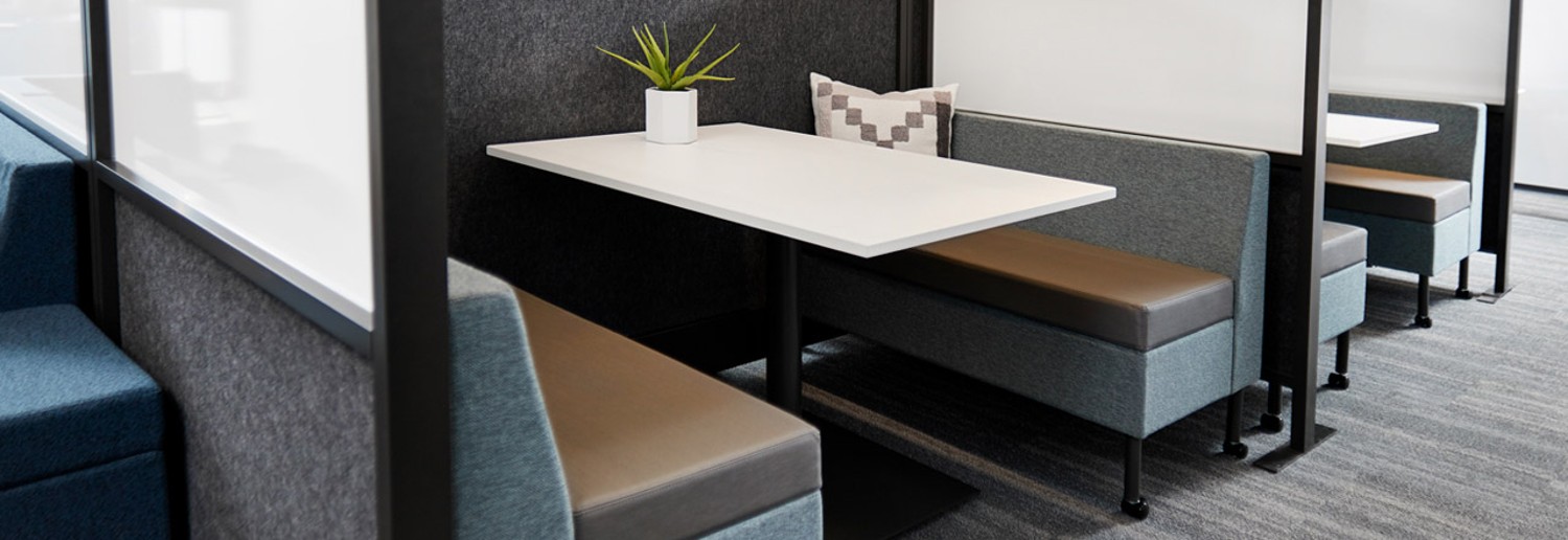 Tattoo tables’ simple design provides the perfect temporary worksurface or third space collaboration table. Tattoo tables are light scale and appropriately sized to work with Tattoo Screens, Storage and Seating. This simple pedestal base provides easy egress and ingress when used with Tattoo seating or stack chairs. The thin worksurface creates a light look in any space. Create a semi-private yet casual meeting space using Tattoo seating, tables and screens.